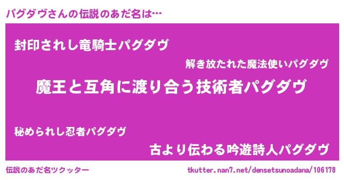 | ヒーロー風カッコイイあだ名 | 『愛の使者パグダヴ』『スーパーパグダヴ』 |