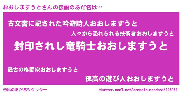 | 胡散臭い通販商品みたいなあだ名 | 『億万長者になれるブレスレット…その名も「おおしますうと」』 |