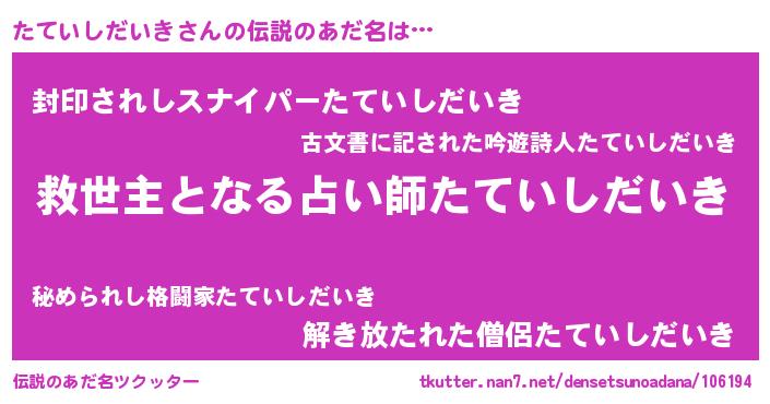 | ヒーロー風カッコイイあだ名 | 『慈愛の使者たていしだいき』 |
