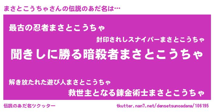 | 男性向けラノベタイトル風あだ名 | 『まさとこうちゃという概念が存在しない退屈な世界 』 |