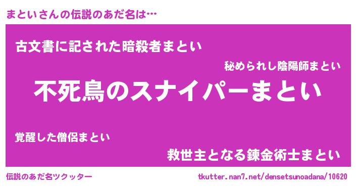 | 胡散臭い通販商品みたいなあだ名 | 『モテモテ間違いなし霊験あらたかなお札…その名も「まとい」』 |