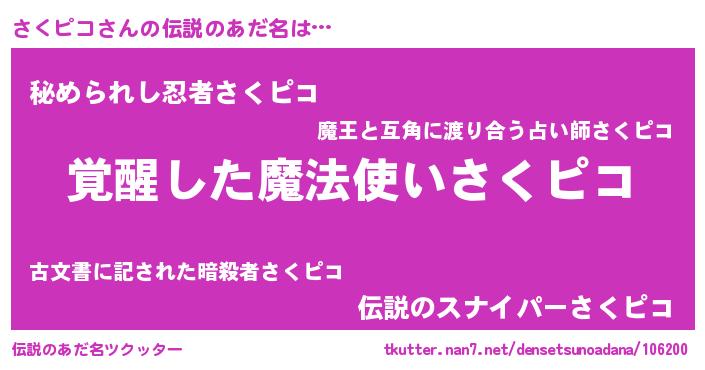 | 意味不明あだ名 | 『住所不定無職さくピコ(5歳)』 |