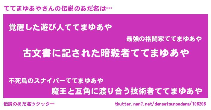 | 胡散臭い通販商品みたいなあだ名 | 『前代未聞の健康食品…その名も「ててまゆあや」』 |