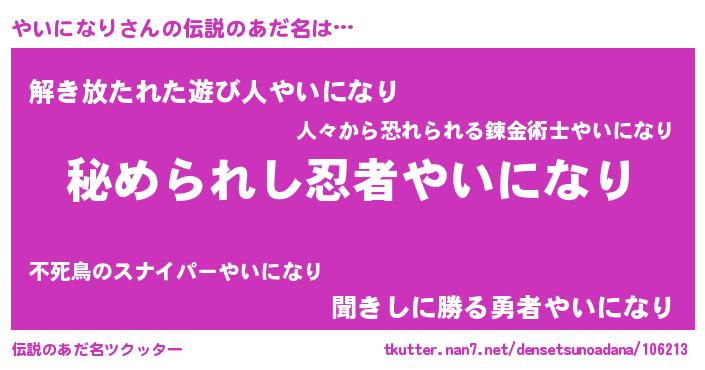 | ヒーロー風カッコイイあだ名 | 『仮面ヤイダー』『銀牙騎士ヤイ』 |