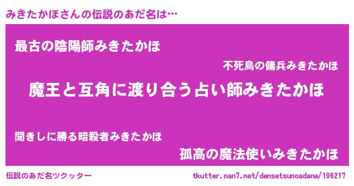 | 女子向けラノベタイトル風あだ名 | 『みきたかほ恋絵巻』 |