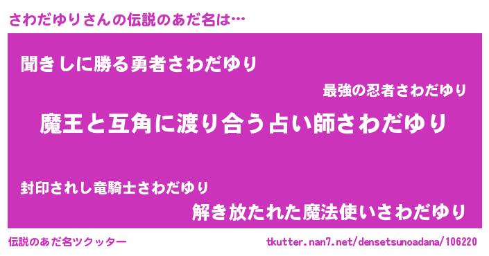 | 男性向けラノベタイトル風あだ名 | 『ノーゲーム・ノーサワダユリ』 |