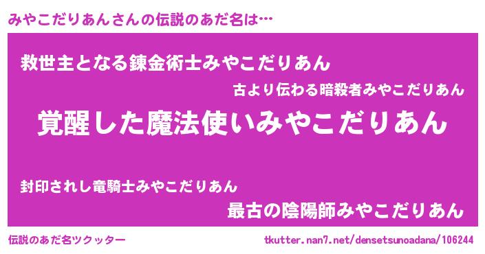| 意味不明あだ名 | 『住所不定無職みやこだりあん(12歳)』 |