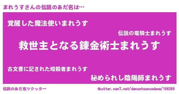 | ヒーロー風カッコイイあだ名 | 『仮面マレダー』『天空の使者まれうす』 |