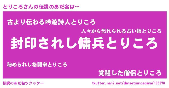 | 胡散臭い通販商品みたいなあだ名 | 『億万長者になれる水晶球…その名も「とりころ」』 |