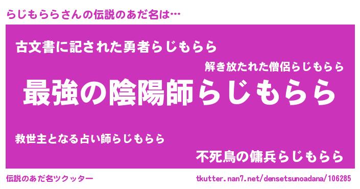 | 男性向けラノベタイトル風あだ名 | 『らじもららに滅ぼされるだけの簡単なお仕事です』 |