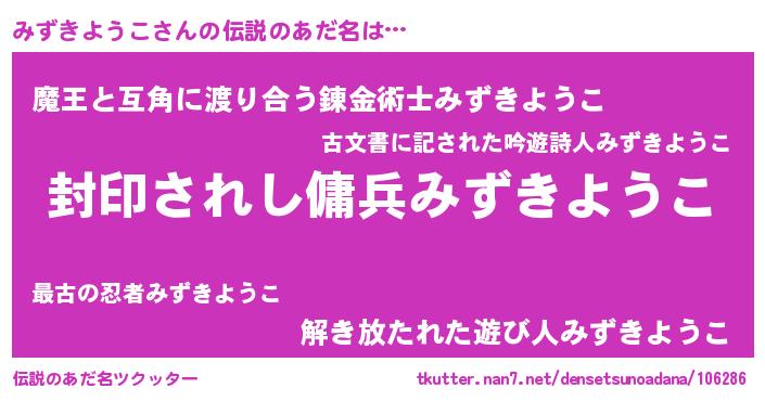 | 男性向けラノベタイトル風あだ名 | 『みずきようこに滅ぼされるだけの簡単なお仕事です』 |