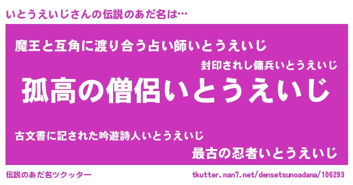 | 男性向けラノベタイトル風あだ名 | 『ダンジョンにいとうえいじを求めるのは間違っているだろうか』 |