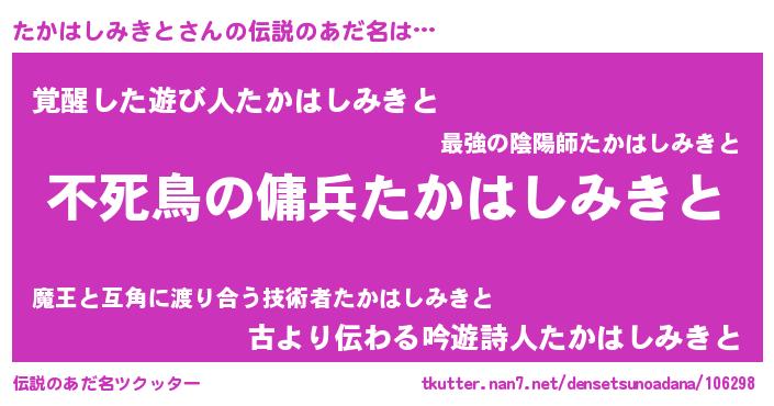 | 意味不明あだ名 | 『住所不定無職たかはしみきと(62歳)』 |