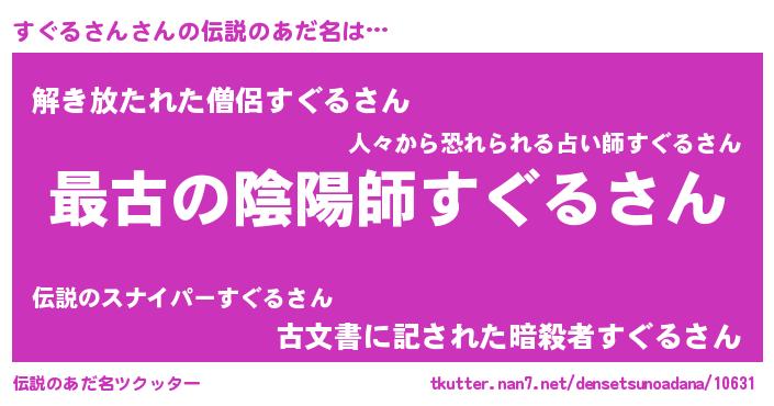 | ファンタジー風あだ名 | 『エターナルスグルサンー』『ゼスグトゥ』 |
