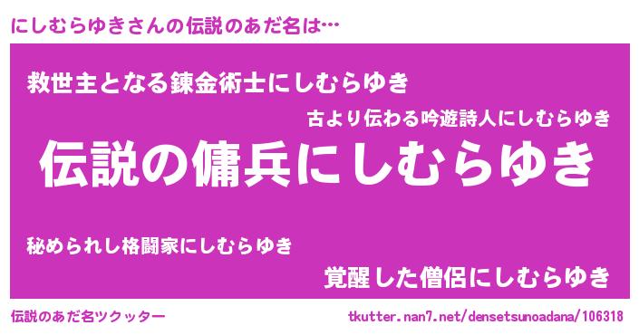 | 男性向けラノベタイトル風あだ名 | 『にしむらゆきの憂鬱』 |