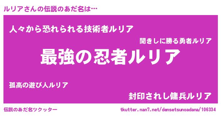 | 女子向けラノベタイトル風あだ名 | 『ルリアの婚約者』『ルリア恋絵巻』 |