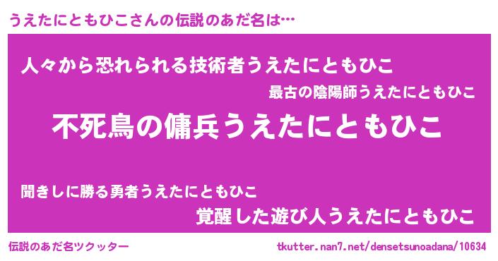 | 意味不明あだ名 | 『自称うえたにともひこ』 |
