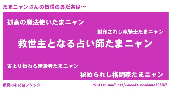 | ヒーロー風カッコイイあだ名 | 『慈愛の使者たまニャン』『暗黒騎士タマ』 |