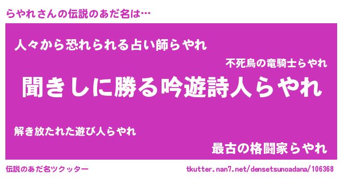 | ヘコむあだ名 | 『らやれ(小並感)』『つくし』 |