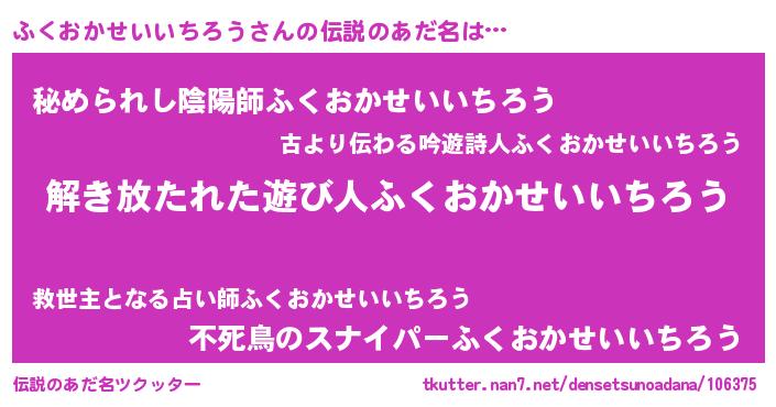 | 意味不明あだ名 | 『住所不定無職ふくおかせいいちろう(91歳)』 |