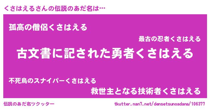 | ヒーロー風カッコイイあだ名 | 『ネオクサハエル』『暗黒騎士クサ』 |