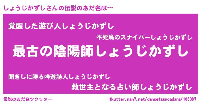 | 意味不明あだ名 | 『住所不定無職しょうじかずし(86歳)』 |