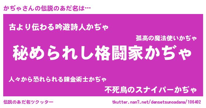 | 男性向けラノベタイトル風あだ名 | 『緋弾のカヂャ』 |