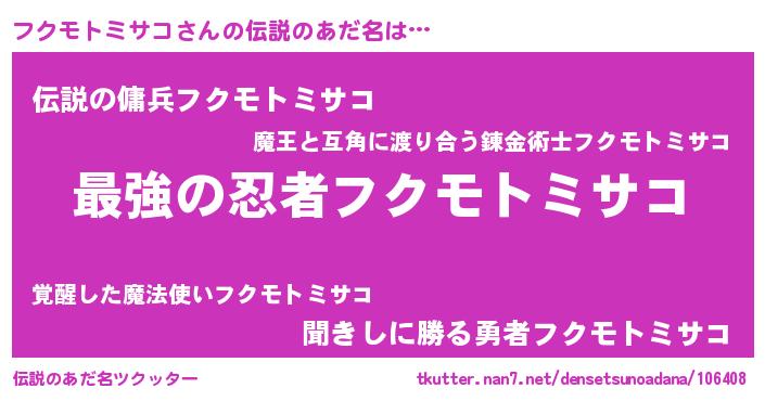 | ヒーロー風カッコイイあだ名 | 『究極戦士フクモトミサコ』 |