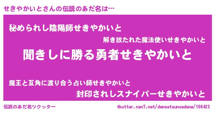 | 意味不明あだ名 | 『永久保存せきやかいと』 |