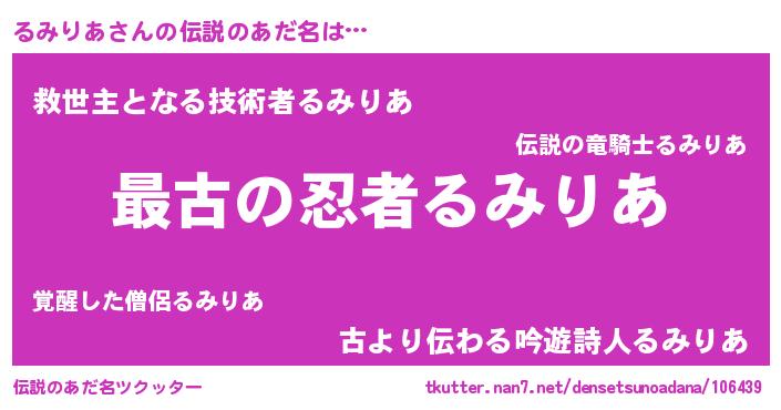 | 肩書あだ名 | 『るみりあ大統領』『るみりあ助教授』 |