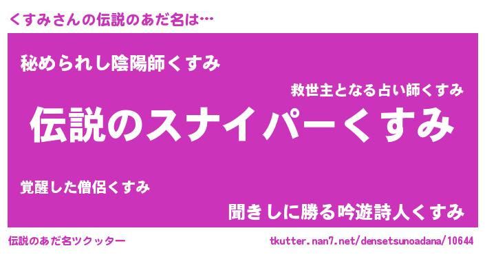 | ヘコむあだ名 | 『くすもー』『酢こんぶ』『くすっ子』 |