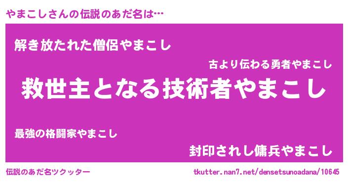 | 意味不明あだ名 | 『ヨモギ科やまこし属』『自称やまこし』 |