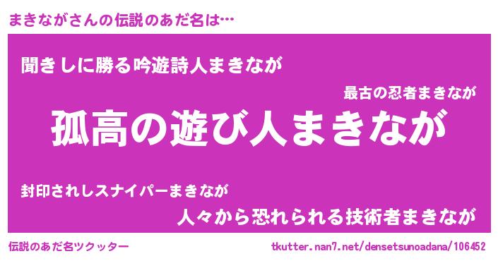 | 女子向けラノベタイトル風あだ名 | 『まきながは平凡を望む』 |