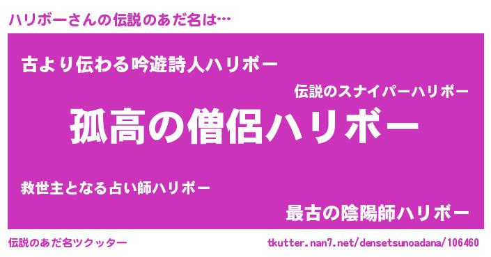 | ヒーロー風カッコイイあだ名 | 『黄金騎士ハリ』『ネオハリボー』 |