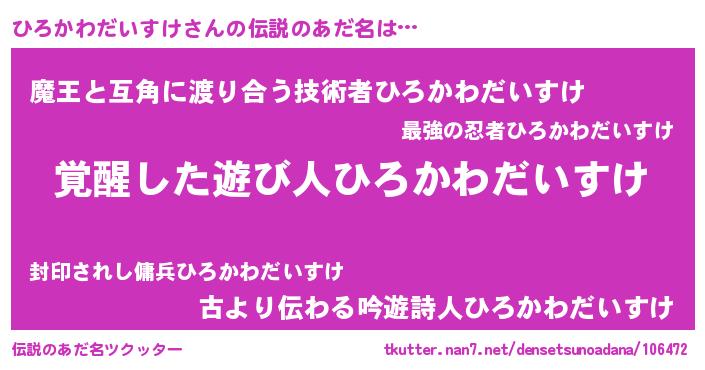 | ポケモン風あだ名 | 『ヒヒロカワダイスケ』『ヒロキング』 |