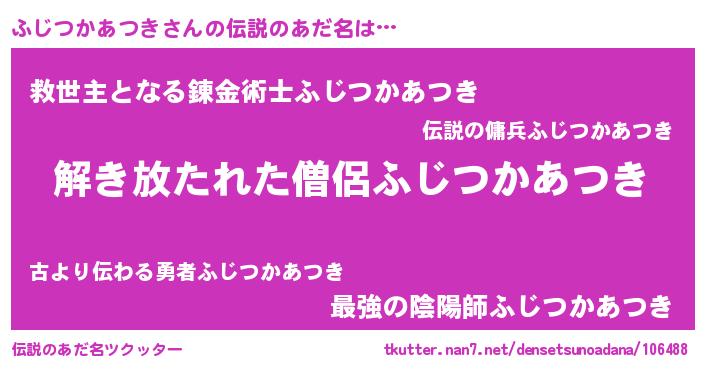 | 意味不明あだ名 | 『とにかく怪しいふじつかあつき』 |
