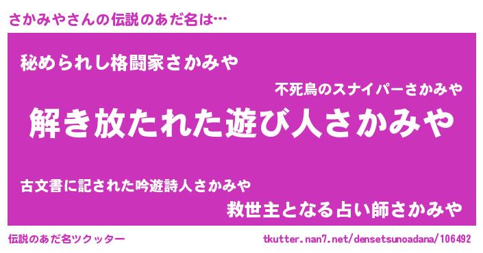 | 男性向けラノベタイトル風あだ名 | 『この素晴らしい世界にさかみやを!』 |