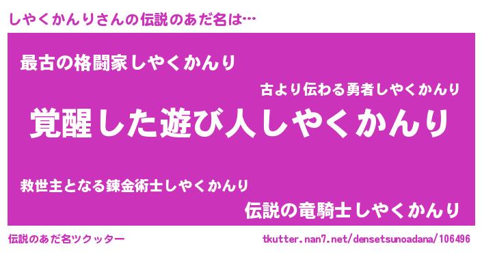 | 男性向けラノベタイトル風あだ名 | 『しやくかんり~年齢イコール彼女いない歴の魔法使い~』 |