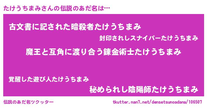 | ヘコむあだ名 | 『たけうちまみ(遠い目)』『酢こんぶ』 |