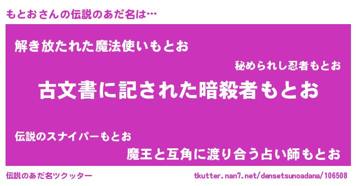 | ヒーロー風カッコイイあだ名 | 『ネオモトオ』『仮面モトダー』 |
