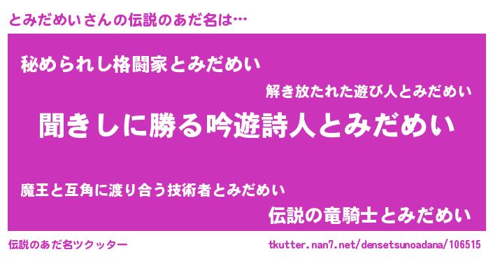 | 意味不明あだ名 | 『住所不定無職とみだめい(10歳)』 |