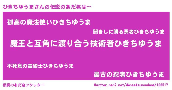 | 男性向けラノベタイトル風あだ名 | 『ひきちゆうまに滅ぼされるだけの簡単なお仕事です』 |