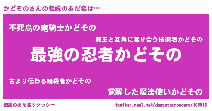 | 意味不明あだ名 | 『かどそのフォーエバー』『自称かどその』 |