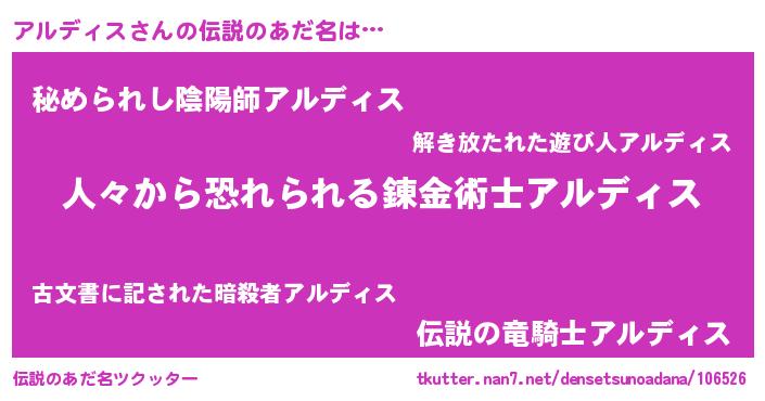 | ヒーロー風カッコイイあだ名 | 『友情の使者アルディス』『幻影騎士アル』 |