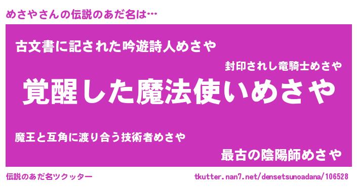 | 意味不明あだ名 | 『とにかく怪しいめさや』 |