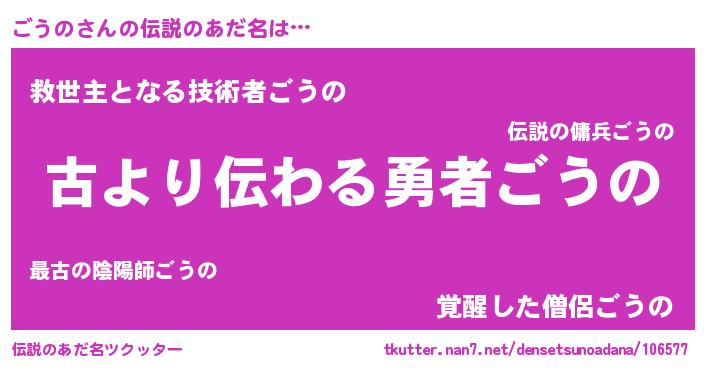 | 胡散臭い通販商品みたいなあだ名 | 『来世でも幸せになれる水素水…その名も「ごうの」』 |