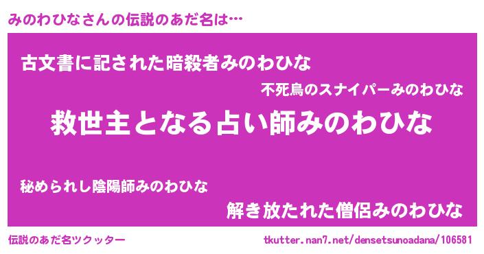 | 意味不明あだ名 | 『住所不定無職みのわひな(50歳)』 |
