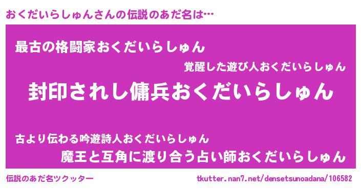 | 肩書あだ名 | 『おくだいらしゅん閣下』 |