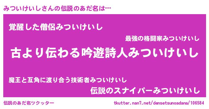| 意味不明あだ名 | 『永久保存みついけいし』 |