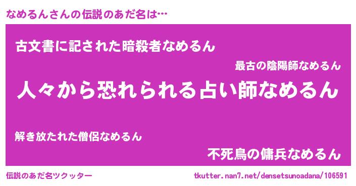 | 男性向けラノベタイトル風あだ名 | 『緋弾のナメルン』『魔弾の王となめるん』 |